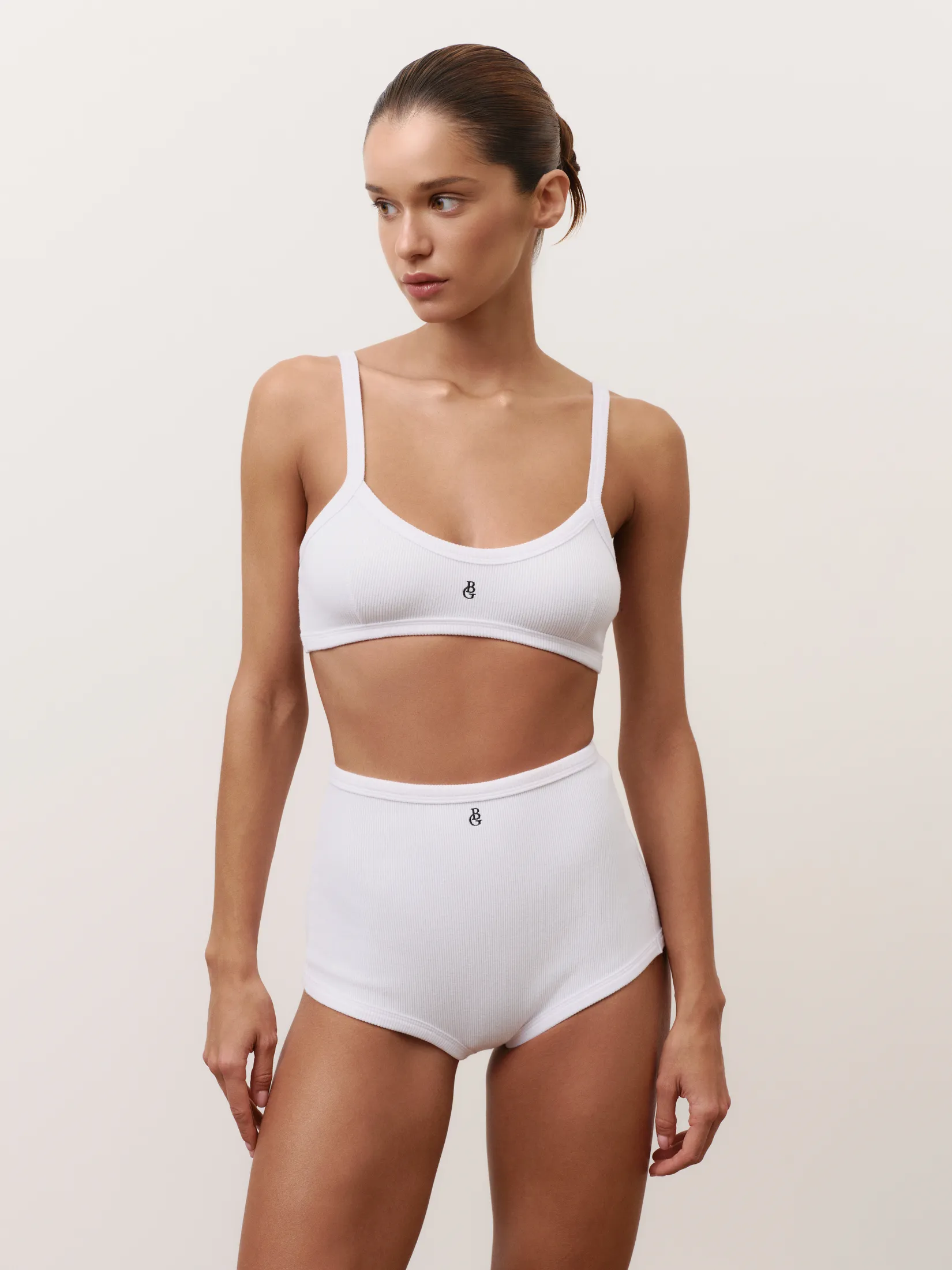 Ліф в рубчик з вишитим логотипом BG. Спинка закрита, без защіпки, бретелі з окантовки. Натуральна тканина дозволяє шкірі дихати, не створюючи дискомфорт під час носіння. Мінімалістичний стиль виробу дозволяє легко поєднувати його для повсякденних образів, комбінуючи з білизною або повсякденним одягом.